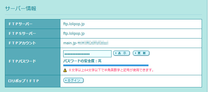 - パスワード FTPパスワードの欄を参照しに入力します。